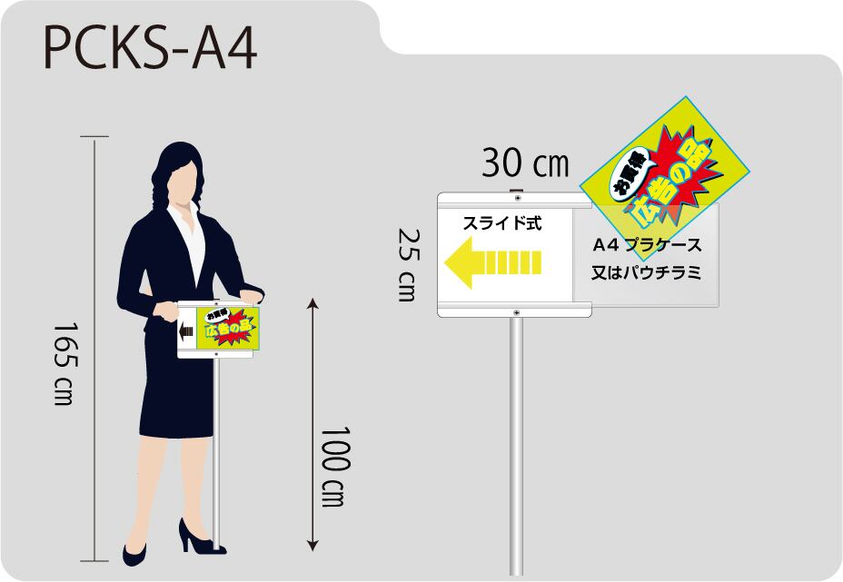 片面仕様のプラカードです、面板と持ち手がワンタッチで脱着できますので保管場所もコンパクトに収納できま。